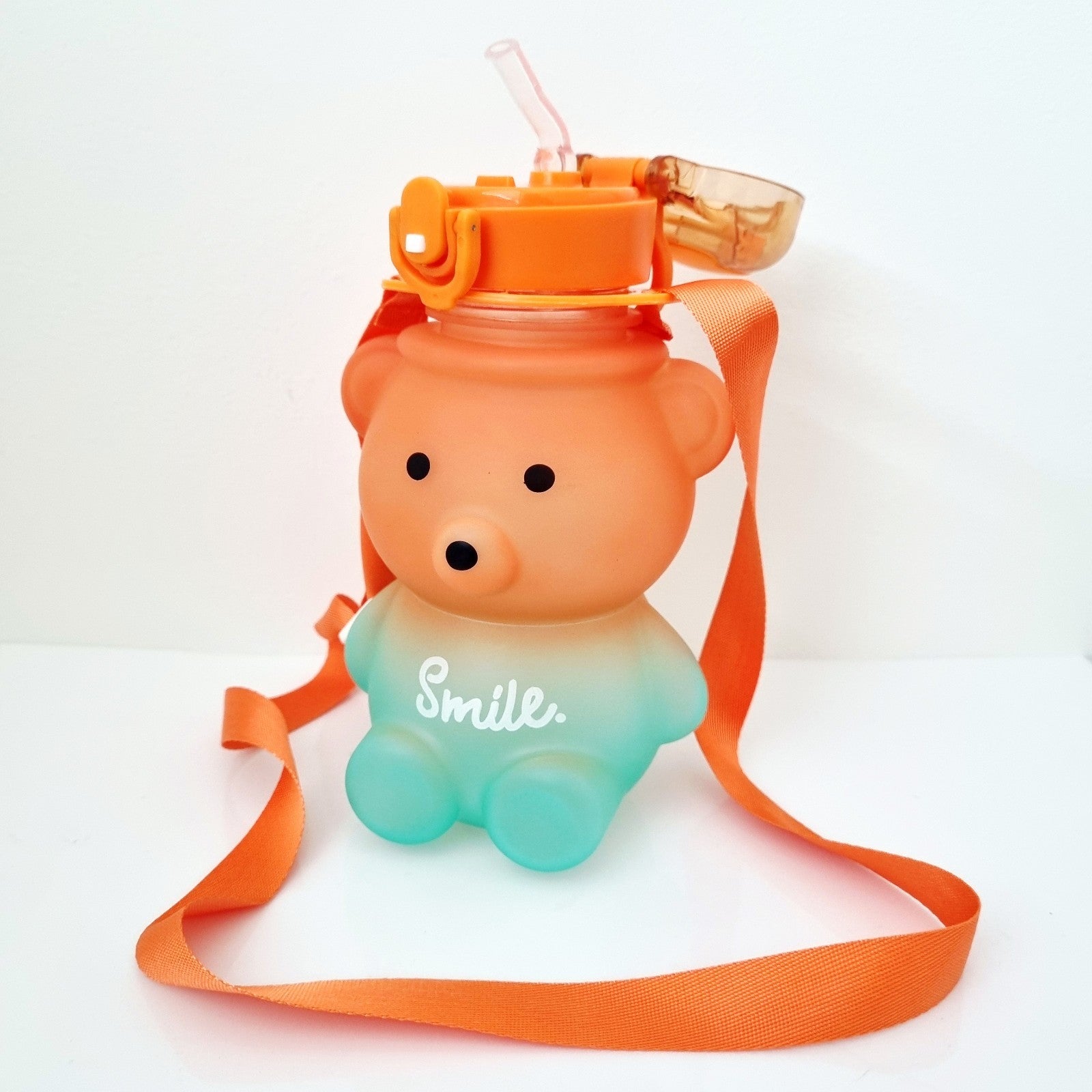 Bring smiles to hydration time with this delightful bear-themed water bottle! Featuring a charming character in bold orange and green hues, this 27oz bottle keeps your cold drinks refreshing throughout the day. The easy-flip lid with integrated straw makes drinking convenient, while the included carrying strap lets you take it anywhere. Bonus fun stickers add extra personality, making it the perfect companion for kids, teens, and adults who want their water bottle to be as cheerful as they are!