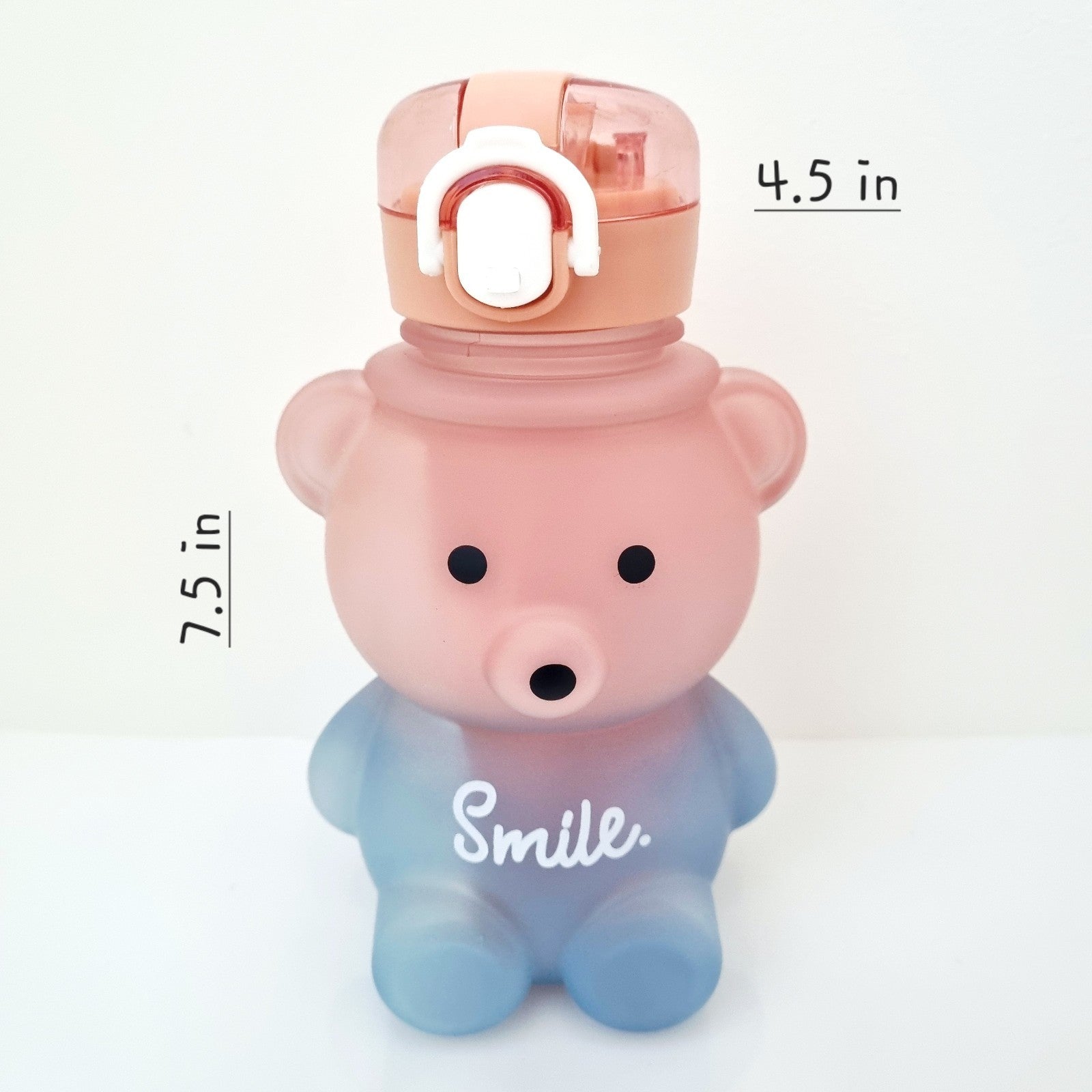Quench your thirst with personality! This delightful bear-themed water bottle combines function with fun in bold blue and pink hues. Featuring an inspiring "Smile" print, the 27oz capacity keeps you refreshed throughout the day. The flip-top lid and included straw make hydration hassle-free, while the attached carrying strap ensures it goes wherever you do. Made from tough, lightweight plastic that won't weigh you down, this bottle is perfect for kids, teens, and adults. Decorate it your way with the bonus sticker set. Simple, cheerful, and ready for action!