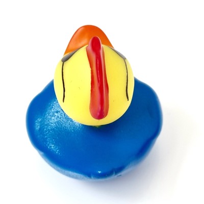 Turn up the cool factor with this Rooster Rubber Duck sporting bold black sunglasses! With its bright red comb, sunny yellow face, and vibrant blue body, this quirky duck channels rooster attitude and summer vibes. Perfect for bath time fun, Jeep ducking, or as a standout piece in any rubber duck collection.
