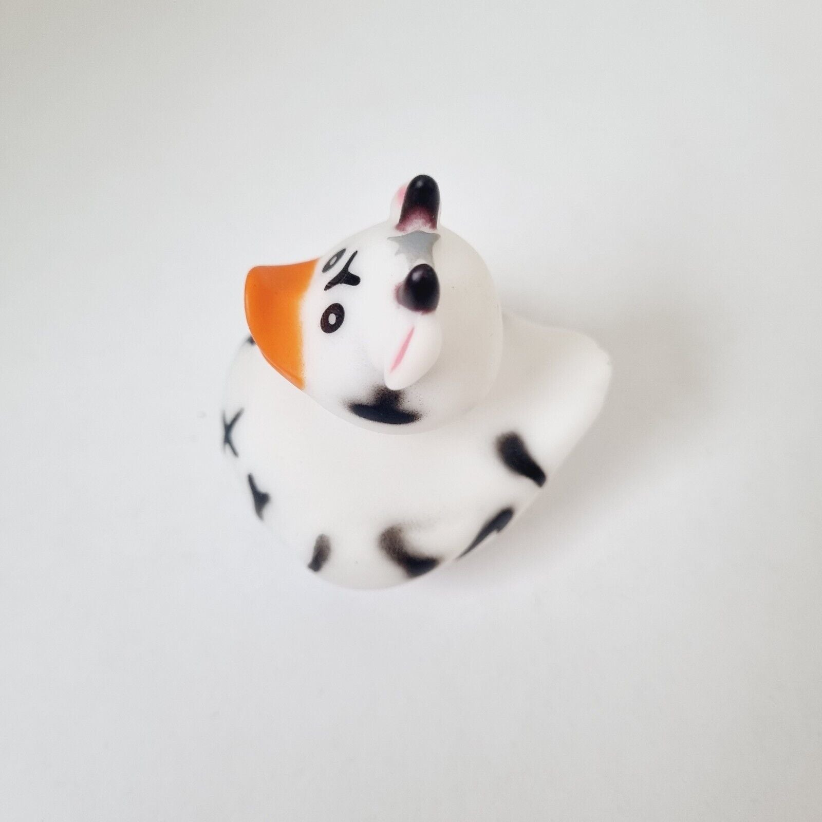 Add a touch of farmyard fun to your vehicle with our Cow Funny Rubber Duck. This delightful duck features classic black-and-white cow spots, a cheerful expression, and a charming bell collar, making it a standout addition to your car's interior. Perfect for Jeep enthusiasts participating in the 'ducking' tradition—a friendly gesture where Jeep owners place rubber ducks on fellow Jeeps to spread positivity and camaraderie—it also serves as a whimsical dashboard decoration for any vehicle. Beyond automotive uses, this cow-themed duck makes for a fun bath toy or a unique addition to any rubber duck collection. Crafted from durable materials, it measures approximately 2.17 inches in width and length, and 2.36 inches in height, making it the perfect size for various decorative purposes.