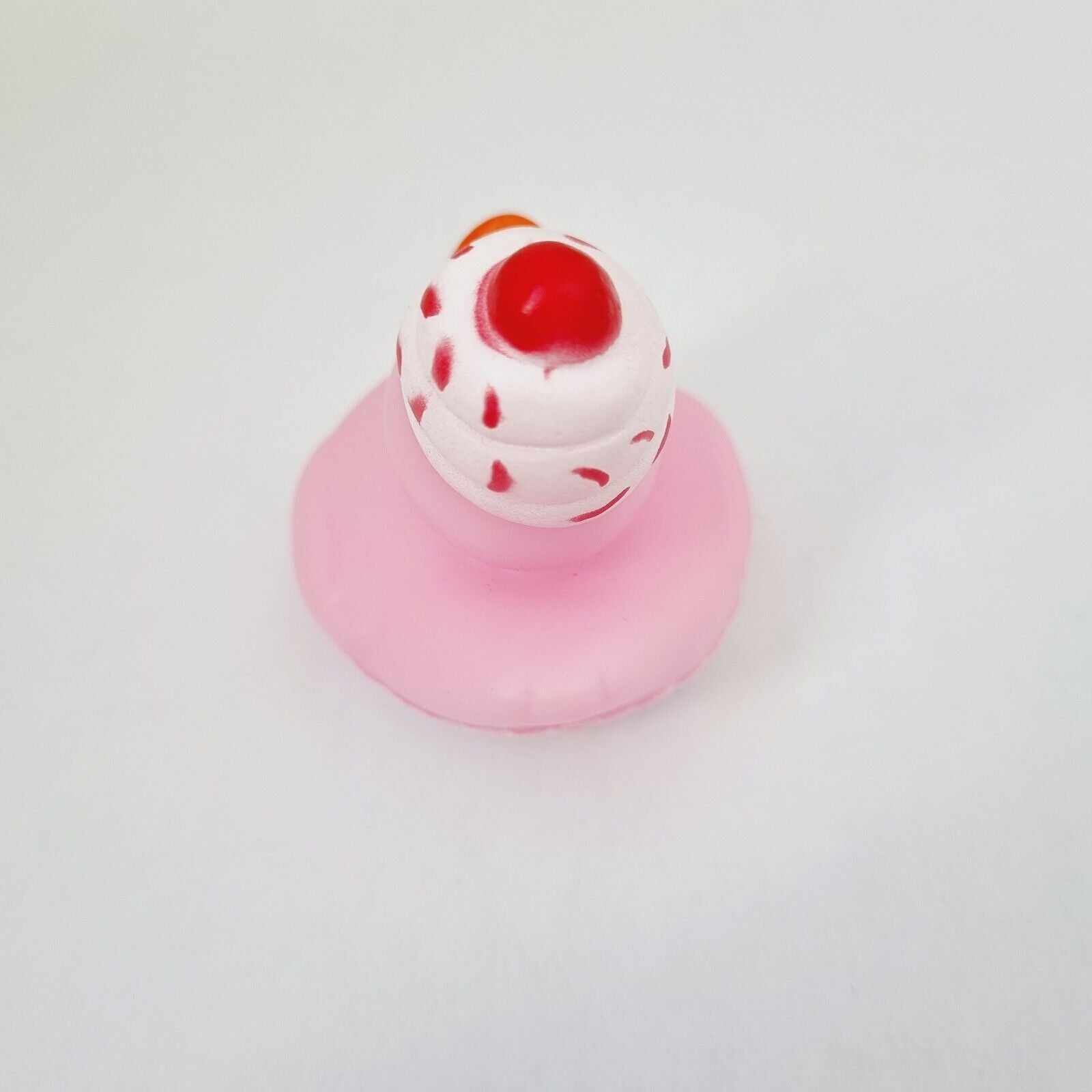 This rubber duck is creatively designed to look like a scoop of ice cream, complete with a swirl of "cream" on top. This toy combines the cool appeal of ice cream with the classic charm of a rubber duck.