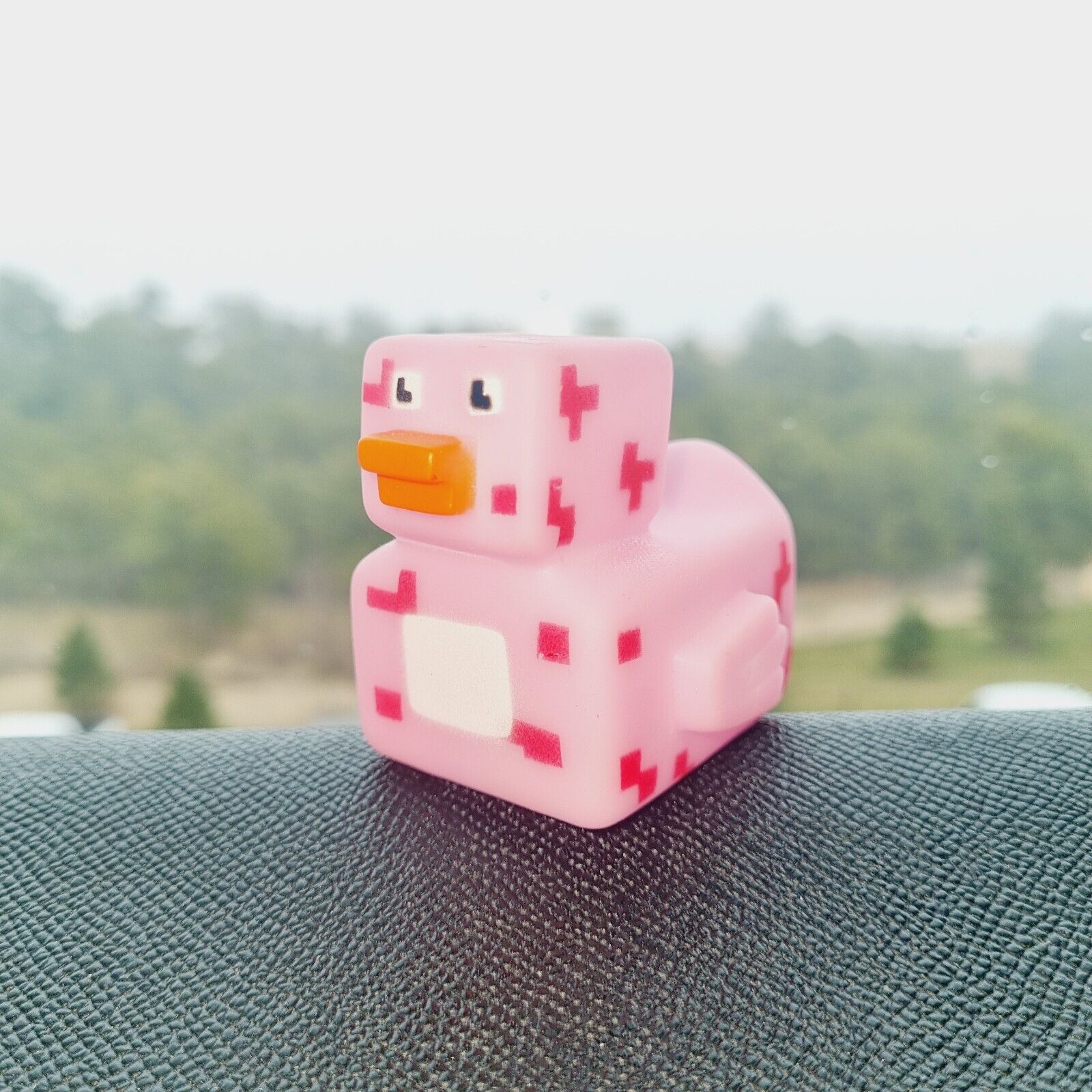 Combine the pixelated charm of Minecraft with a playful pop of pink in this unique rubber duck. Perfect for Jeep enthusiasts participating in the 'ducking' tradition—a friendly gesture where Jeep owners place rubber ducks on fellow Jeeps to spread positivity and camaraderie—it also serves as a delightful dashboard decoration for any vehicle. Beyond automotive uses, this pink Minecraft-themed duck makes for a fun bath toy or a distinctive addition to any rubber duck collection. Crafted from durable materials, it measures approximately 2.17 inches in width, 2.56 inches in length, and 2.17 inches in height, making it the perfect size for various decorative purposes.