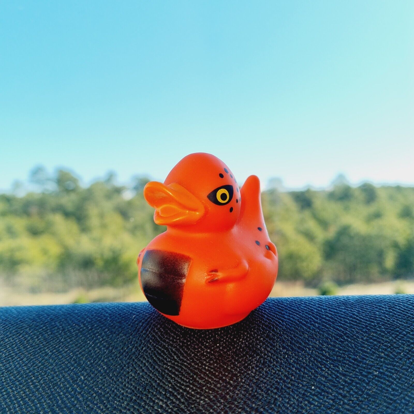 Unleash prehistoric fun with our Raptor Dinosaur Rubber Duck! This fierce yet adorable duck combines the thrill of dinosaurs with the classic charm of a rubber duck, making it a standout addition to any vehicle. Perfect for Jeep enthusiasts participating in the 'ducking' tradition—a friendly gesture where Jeep owners place rubber ducks on fellow Jeeps to spread positivity and camaraderie—it also serves as a unique dashboard decoration for any car. Beyond automotive uses, this dino-themed duck makes for a fun bath toy or a distinctive piece in any rubber duck collection. Crafted from durable materials, it measures approximately 2.17 inches in width and height, and 2.36 inches in length, making it the perfect size for various decorative purposes.
