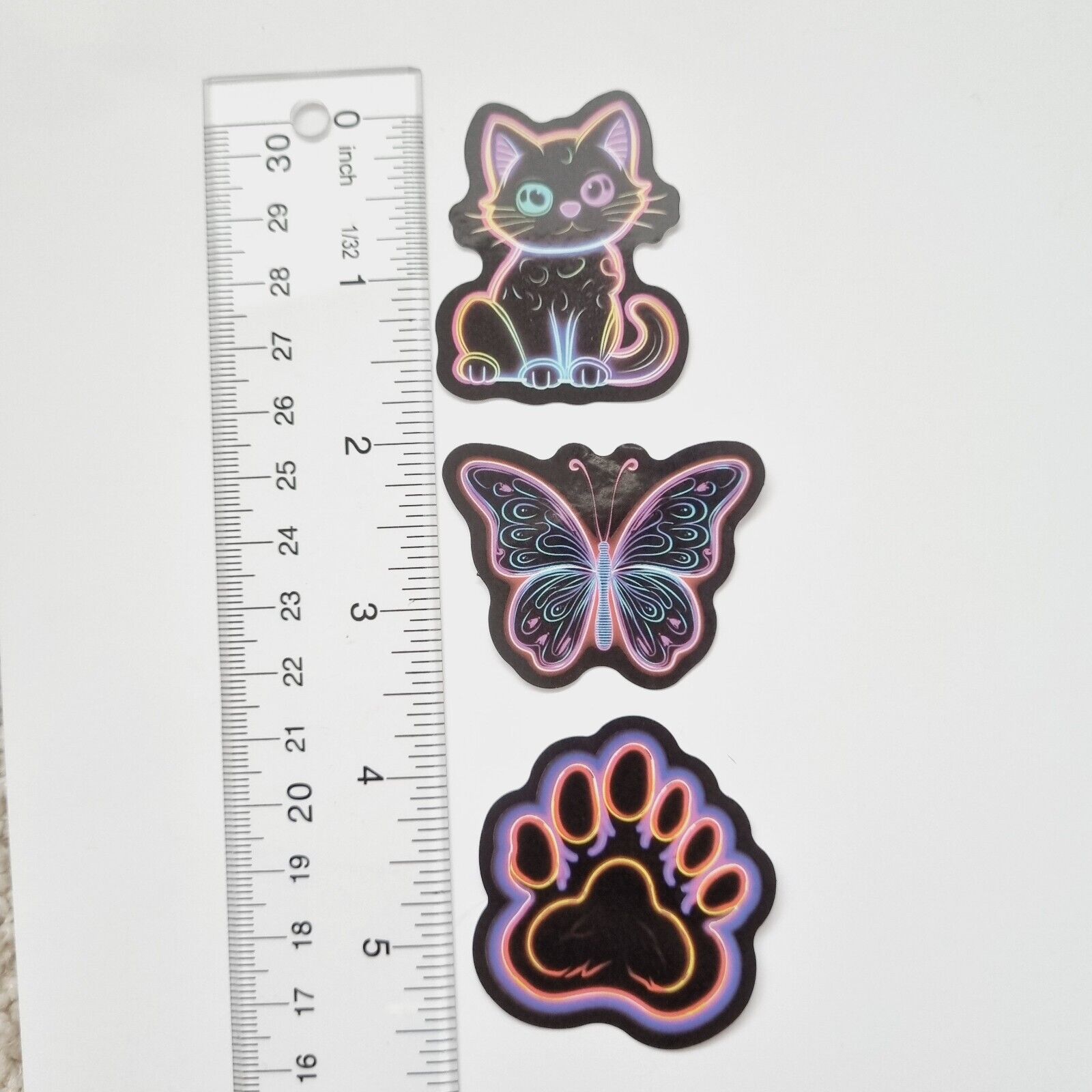 Stickers / Cat / Butterfly / Paw Print / for Laptop, Bottle, Notepad / Set of 3